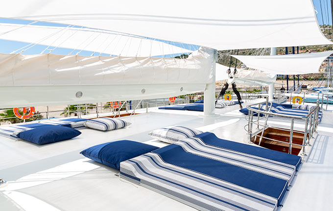 Mit einer Gesamtlänge von 60 m ist unser 3-Master unvergleichlich und ideal für große Gruppen und Familien geeignet. An Bord der MS ADMIRAL erleben Sie eine Küstenkreuzfahrt der besonderen Art. Das blaue Meer, der strahlende Himmel und die vielen Naturbuchten sind die perfekte Kulisse für eine Traumwoche auf unserer Deluxe-Gulet.
