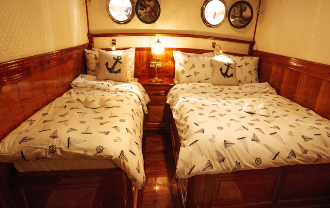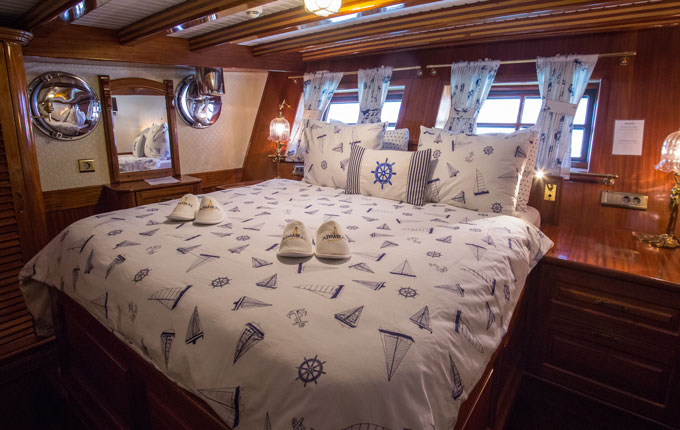 Die verschiedenen Kabinenkategorien in hochwertiger Ausführung und maritimen Ambiente bieten viel Flexibilität in der Unterbringung. Neben 12 Doppelkabinen (davon 2 mit Twinbeds) verfügt die MS Admiral auch über 4 Triple-Kabinen (keine Etagenbetten!). Selbstverständlich verfügt jede Kabine über ein eigenes Bad en-suite in einer ebenfalls edlen Ausstattung.