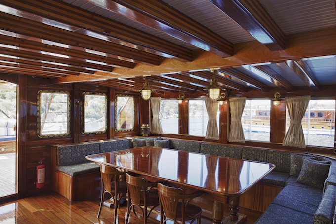 Der fast 200 qm große Salon in maritimen Stil verfügt über eine großzügige Bar und ausreichend Sitzplätze. Eine osmanische Ecke lädt ein zum Backgammon-Spiel, Lesen oder Wasserpfeife. Die perfekte Kulisse von Meer und Küstenlandschaft genießen Sie auf dem großen Sonnendeck, welches über ausreichend Sitz- oder Liegemöglichkeiten verfügt.