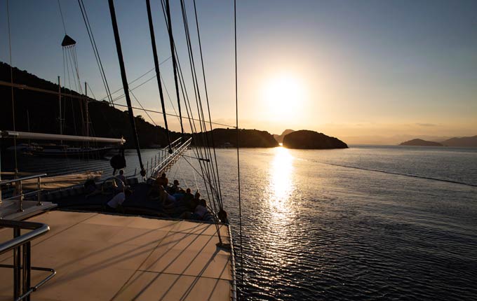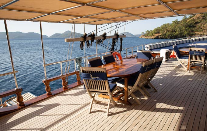 Mit einer Gesamtlänge von 60 m ist unser 3-Master unvergleichlich und ideal für große Gruppen und Familien geeignet. An Bord der MS ADMIRAL erleben Sie eine Küstenkreuzfahrt der besonderen Art. Das blaue Meer, der strahlende Himmel und die vielen Naturbuchten sind die perfekte Kulisse für eine Traumwoche auf unserer Deluxe-Gulet.